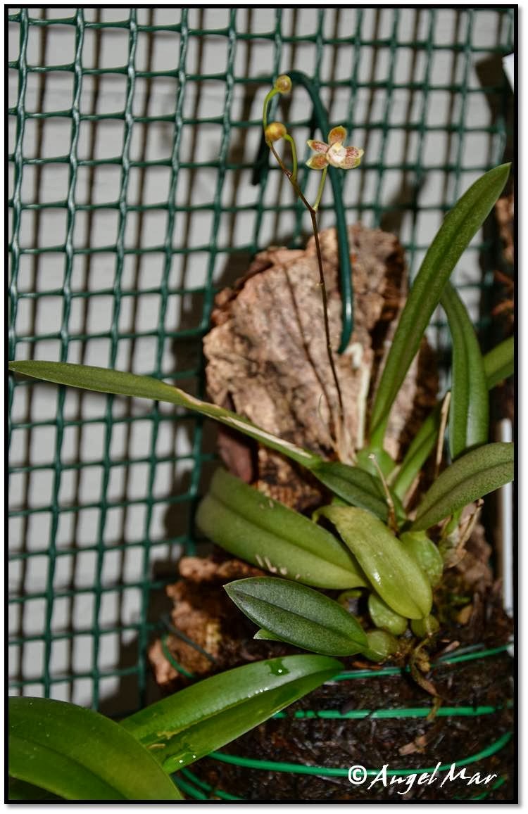 Otra posibilidad, que es la que más utilizo yo, consiste en montar las plantas o las divisiones sobre troncos o placas de corcho, cubriendo las raíces con musgo sphagnum o de bosque. Es importante si las vas a tener en una zona donde el calor del verano las pueda hacer sufrir. Es necesario, en ese caso, que las riegues a diario, así como vaporizaciones frecuentes. Yo en verano utilizo también un riego por goteo para ayudar a mantener las raíces húmedas y como garantía de supervivencia si vas a estar fuera más de dos días por viaje o vacaciones. Si no hace demasiado calor y puedes mantener la humedad controlada les verás llenarse de flores durante dos meses.