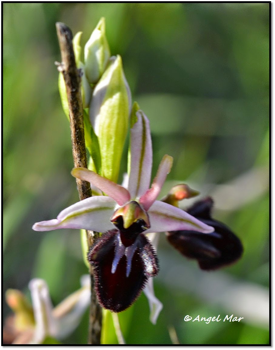 Ophrys incubacea Bianca 1842. Son orquídeas terrestres relativamente comunes en grandes zonas de Portugal, España, Francia, Córcega, Cerdeña, Sicilia, Italia, Yugoslavia o Albania. Las incubaceas están incluidas en el grupo de las Ophrys sphegodes con la características líneas en forma de H en el espéculo, presentando diversas gibosidades y densas vellosidades en el labelo de color oscuro. Los sépalos suelen ser verdes, cremas, amarillentos y a veces rosados o púrpuras (Var. rubrifolia) formando un llamativo contraste.